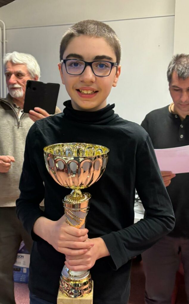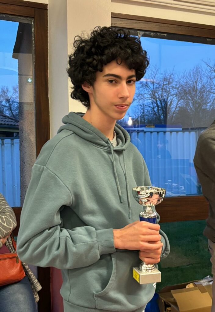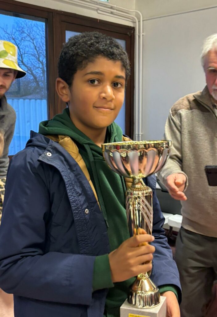 Les autres résultats : – U8 : Aaron KISSI – 3pts – 35ème/52 et Jérémie CANE – 2pts – 47ème – U10 : Alexandre DE NOBLENS – 3,5pts – 37ème/68 et Isaac KISSI – 2,5pts – 55ème – U12 : Eric LECOCQ – 4pts – 34ème/79 et Noémie AMARO BRANDAO – 2pts – 73ème – U14 : Alain KOCHARYAN – 1,5pts – 65ème/68 – U16 : Marin MAS – 2,5pts – 42ème/51 et Gabin FERRAND – 2pts – 49ème – U18 : Timothée DECLERCK – 3,5pts – 14ème/32