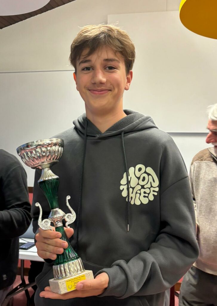 Corentin DECLERCK, qui a brillamment terminé 6ème chez les U14 avec 5pts (alors qu’il a joué un match en moins !), décrochant ainsi sa qualification pour le Championnat de France !