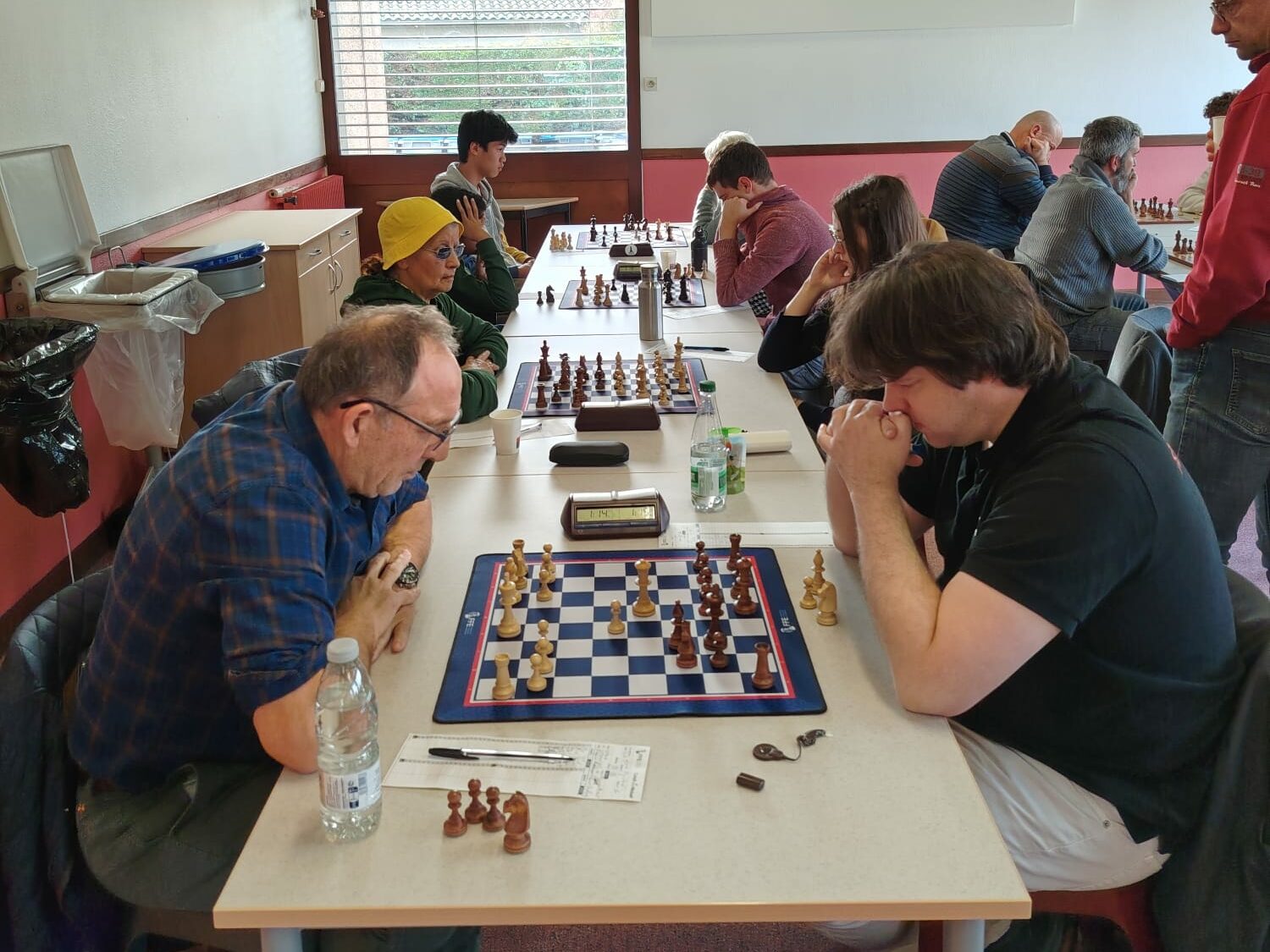 Son frère à peine plus vieux résiste un peu plus longtemps contre notre capitaine mais doit subir la même sentence. 3-0 pour nous pendant un certain temps. Mais Corentin, malade et en petite forme, se fait attaquer sur le roi, et doit donner du matériel pour un sursis. Le match est loin d’être gagné car les palois résistent et ont encore des cartouches. Alors Lucas sort sa grosse partie et domine son adversaire de A à Z ! Il gagne !