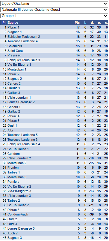 42 équipes participantes au sein de la N3 Jeunes Occitanie Ouest