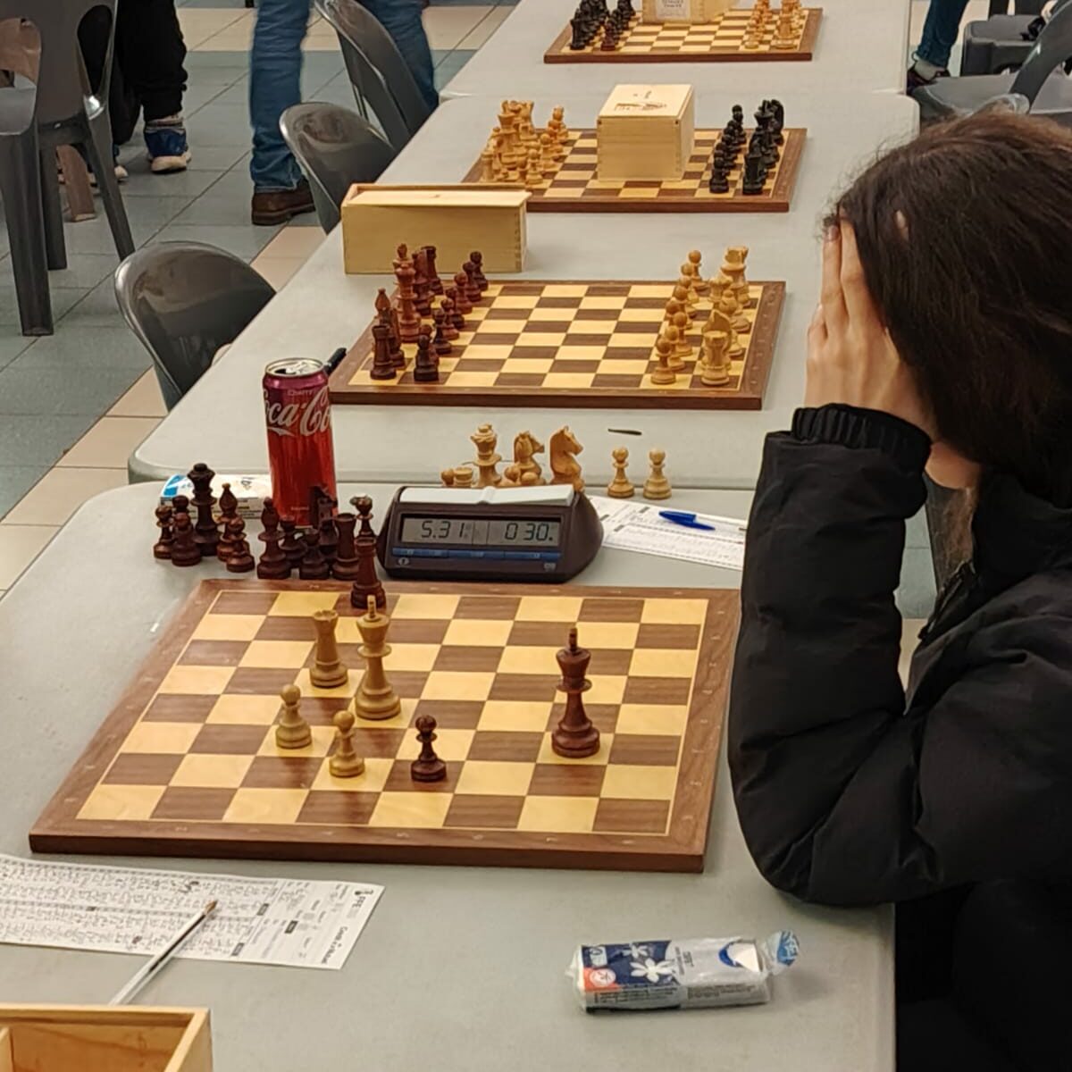 Et après avoir refusé très catégoriquement la nulle, c’est Franck qui met son équipe en tête pour la première fois de l’après-midi ! 4-3 et un suspens à son comble puisque Chloé a une finale inférieure…