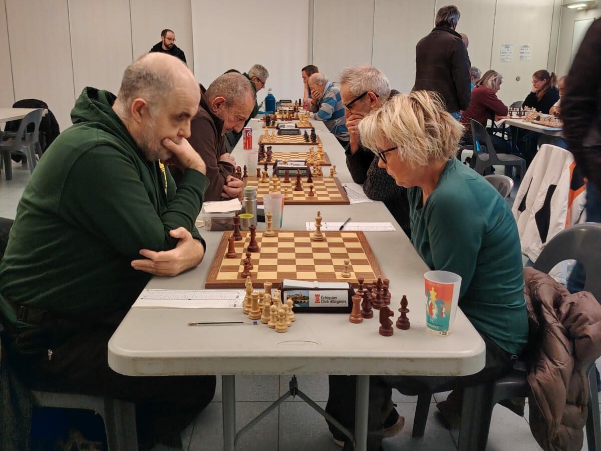 Héroïque, elle refuse tous les échanges de tours, et finit à l’usure, après près de cinq heures de jeu par manger les deux derniers pions adverses. Le joueur et la joueuse se mettent d’accord pour la nulle tant attendue et Montauban 2 gagne son deuxième match de la saison !!