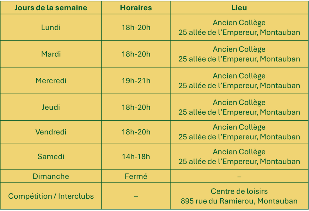 Le club vous accueille au sein de la Maison de la Culture à l’Ancien Collège – 25 allée de l’Empereur – 82000 MONTAUBAN.