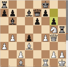 Les noirs protège f7 et menace Df4 mat. Mais Lucas saute sur l’occasion pour répéter la position et annuler la partie.