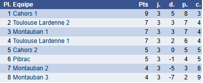Côté résultats, Montauban 1 fait 2 matchs nuls et une victoire, Montauban 2 aura tout connu avec une victoire, un match nul et une défaite, et Montauban 3 très affaibli arrache une belle victoire après deux défaites inaugurales !