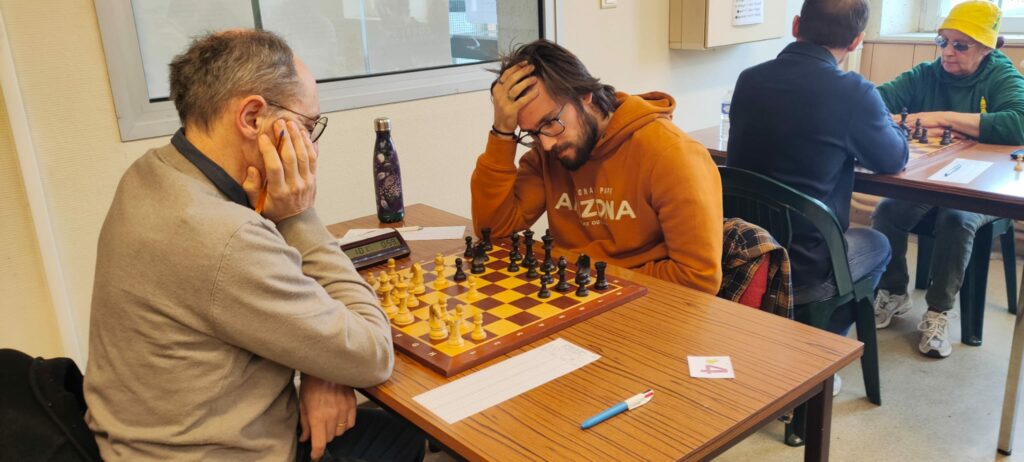 Mais si Yann avait montré sa nette supériorité en 2024, cette fois-ci j’élimine non sans mal le capitaine de mon équipe de N3, ce compétiteur féroce. De mémoire de joueur, je n’avais jamais vu lors du serrage de mains final, autant de déception visible dans le regard d’un adversaire, déception pourtant emprunte d’une si grande classe.