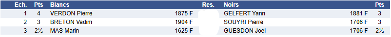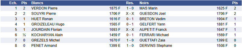 Appariements ronde 5. Malheureusement pour eux, Marin et Joel ne pourront pas refaire leur retard en 2 rondes !